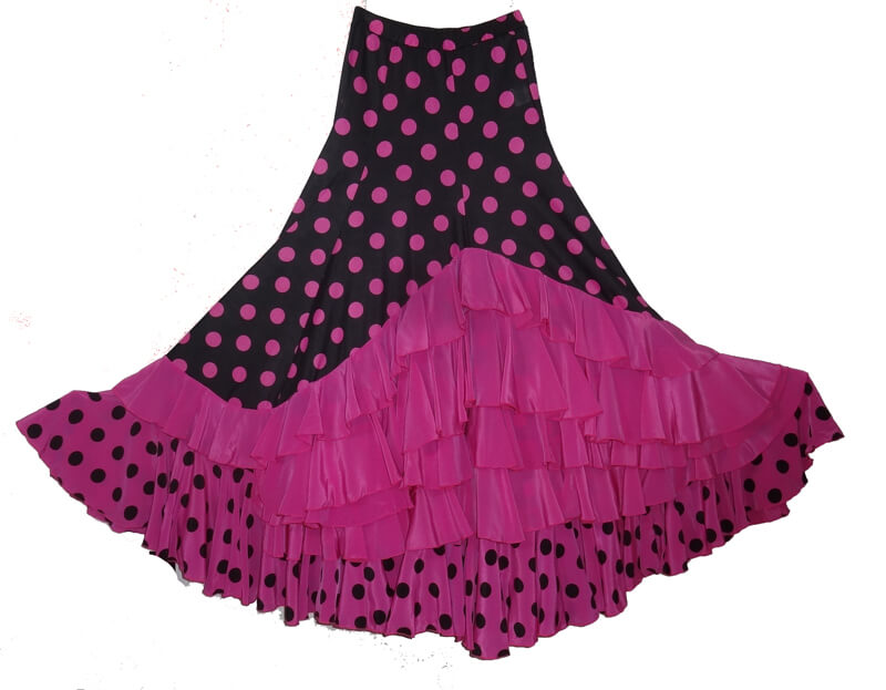 JUPE FLAMENCO OU SEVILLANE NOIR A POIS ROUGE