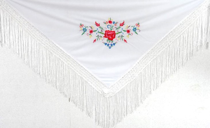 MANTON ; CHALE ; TRIANGLE FILLETTE BLANC BRODE MULTICOLOR