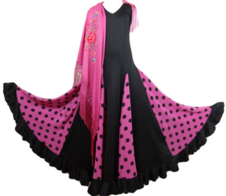 ROBE DE FLAMENCO EN POLYESTER PUNTO UNI ET CREPE POLYESTER A POIS