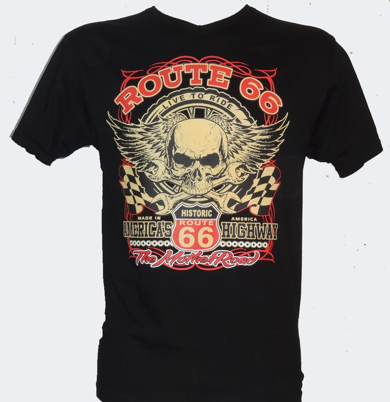 T-SHIRT HOMME BIKER ROUTE 66 WINGED SKULL 22690