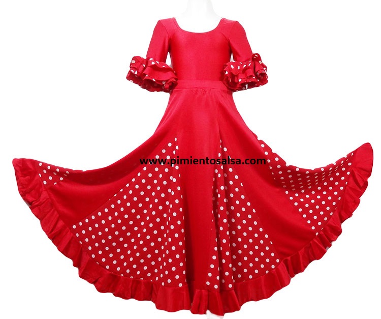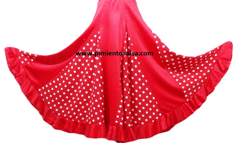 Jupe rouge à petit pois blanc. Idéale pour les cours de flamenco ou